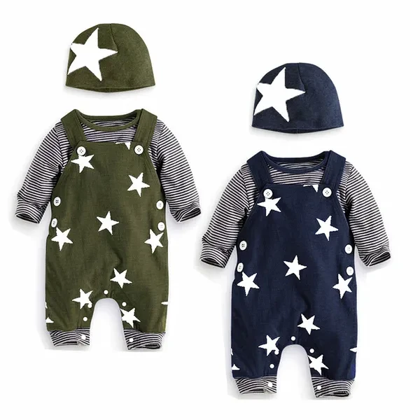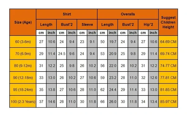 Package Included: 1 set(Long Sleeve Tops+Bib Pants+Hat) Sleeves: Long Sleeve Material: Cotton/Polyester Color:Navy blue,Green Size: 60 70 80 90 95 100 suits for 3 months-3 years (Please refer to dimension drawing,1 CM=0.39 INCH.) Attentions: 1) Shipping:After ordering, we will be the fastest speed of delivery, making it faster to reach. 2) Size:All the length are manual measurement, error range is 1cm-3cm. please understand. 3) Color:Products shooting affected by weather, light and other factors, will produce chromatic aberration, can not be avoided, not a quality problem. 4)Tips: Due to printing and shipping, the product may have some flavor when it is received. You can soak in salt water to not only prevent the clothes from fading but also to remove the taste. Thank you!