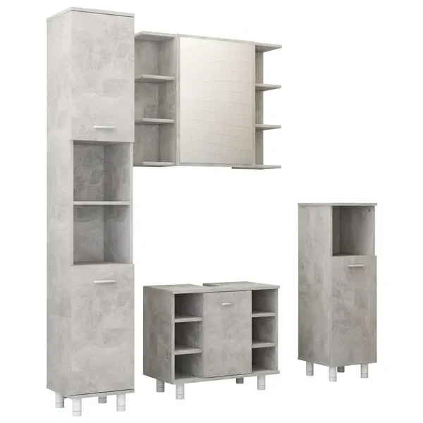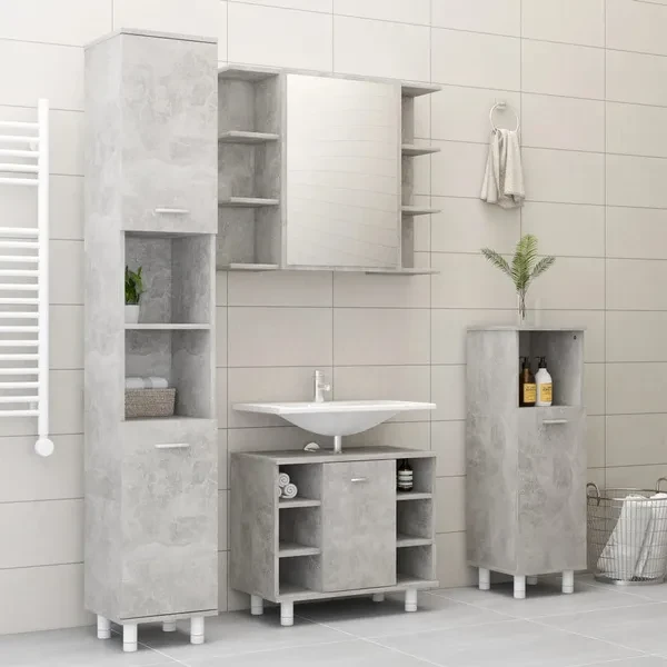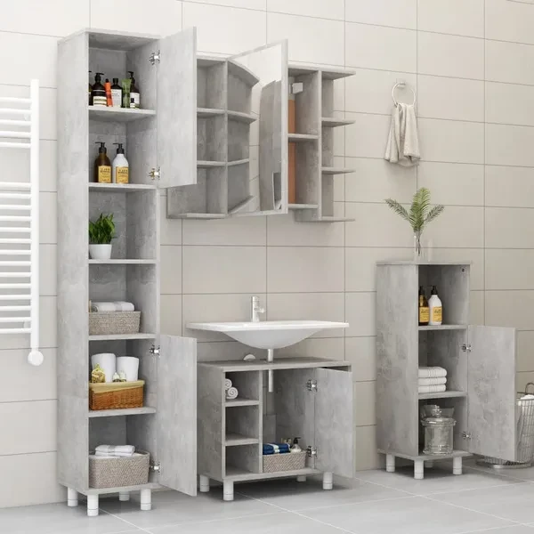 This stylish bathroom furniture set features 1 high cabinet, 1 medium cabinet, 1 under basin cabinet and 1 mirror cabinet. It creates additional storage space for your bathroom with a stunning and neat appearance. Made of premium board, this set is durable and stable. The chic high cabinet has 6 compartments and 2 doors while the medium cabinet has 3 compartments and 1 door. Both offer spacious space to store your essential items in your bathroom. The basin cabinet has 7 compartments and 1 door, providing ample space to store your toiletries, beauty products and various essentials. The mirror cabinet features 1 door and totally 8 compartments. The 6 outside compartments and 2 inside compartments offer additional space, easily accommodating your bath items. The mirror also adds an excellent appearance to your existing home decor. Additionally, this bathroom set is easy to clean with a damp cloth.