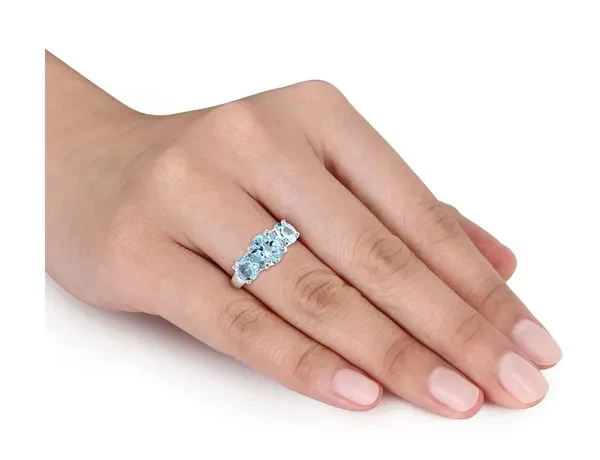 4.35 Carat (ctw) Blue Topaz Three Stone Ring in Sterling Silver