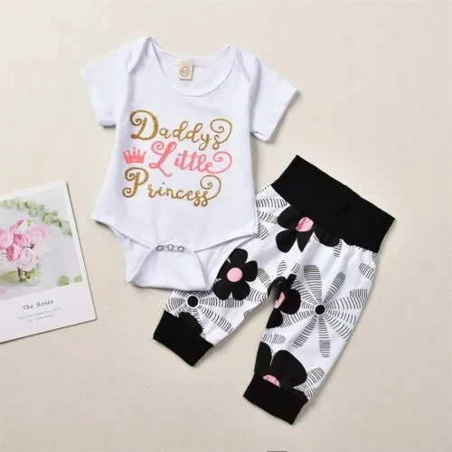 4PCS Newborn Infant Baby Girl Tops Romper Floral Pants Headband Outfits Set Clothes