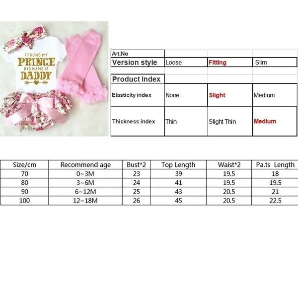 Features: 100% brand new and high quality Fashionable and comfortable design, best-match for summer time Material: cotton Color: Multi-color Note: 1.Please understand that the products maybe a little different from the photos in color. Thank you for your kind understanding! 2.Please choose larger size due to the discrepancy of height. Package Includes: 1Pc Romper, 1Pc Bloomers, 1Pc Headband, 1 Pair of Leg Warmers(any other accessories not included)