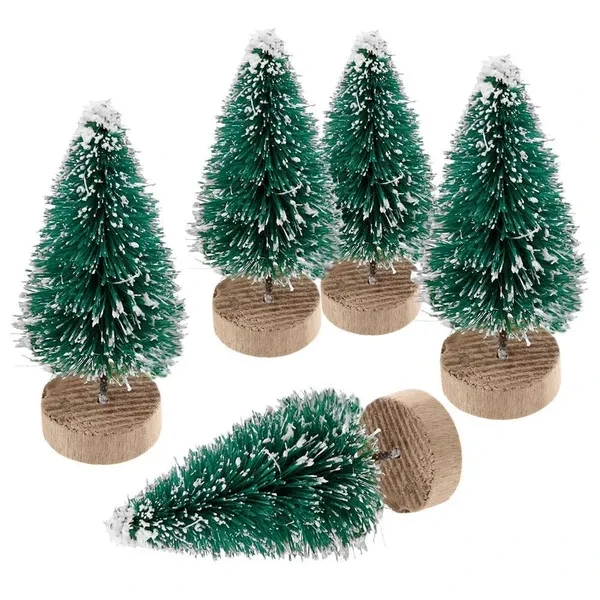 5 Pcs Mini Sisal Bottle Brush CHRISTMAS Tree Santa Snow Frost Village Putz House Xmas Decorations