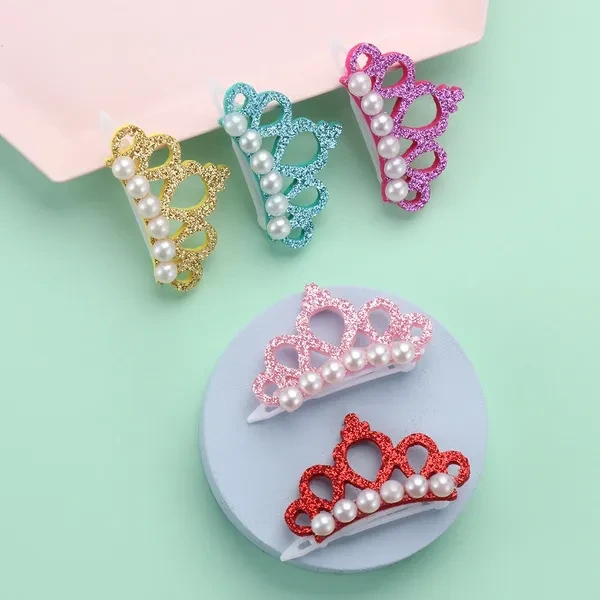 5Pcs Pet Small Dogs Cat Faux Pearl Crown Shape Bows Hair Clips Head Decoration for Pets Puppy Hairpins Decor Grooming Accessoires