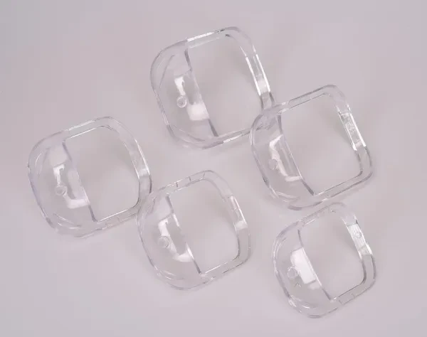 Features: -The tool is semi-transparent, enabling you to see your beard underneath but allowing you to focus on the shape of the line you are cutting without getting distracted. - Simple and easy to master - This new bigger template is perfect for maneuvering around larger beards and is also easier to grip and manipulate. Specification: Color: transparent Size: About 8.3*10cm Material: PS material Packaging: 1 set of 5 sizes beard shaping tool