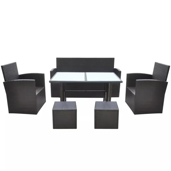 6 pcs. Garden dining set with brown poly rattan cushions Gartenmöbel-Set im Restaurant zu essen tuin eethoek set ensemble de meubles de jardin