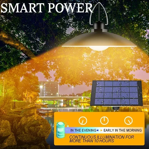 ►NOTES: 1.When using for the first time, you need to turn on the button behind the panel to charge successfully 2.Please let it under sunshine to charge it for several hours when you use it at first time 3.The efficiency of the solar panel depends on the weather,the strong sunshine it has,the better efficiency it will be,the efficiency of the panel will be weakened on cloudy day,the longer sunshine it has,the working time will be longer The specifications Product Name: LED Solar Pendant Light Brand: TRLIFE LED type: upgrade SMD LED Quantity: Each head with 20 LEDs Solar Panel: 5V 15w for 4 headlights Led light color: warm white / white shade Material: PC shell Material: PC + ABS Operating mode: automatically turn on at night until the power is off Installation steps: 1. Connect the solar panel connector line first, 2. Install the solar panel and set the outdoor sun exposure position 3. Hang the lamp cover housing and set the lighting position 4. Distribute the 3 meter extension cable Specification: 4 options: single head, two heads, three heads, four heads LED beads: 20 pieces, 40 pieces, 60 pieces, 80 pieces LED light color: warm white, white Color Temperature (warm light): 3000K - 4500K Color Temperature (white light): 6000K Waterproof: IP65 Lampshade Material: PC Shell material: PC + ABS Package listing:(Optional) 1 x Solar Panel 1/2/3/4 x Heads 1 x Extra 3 meters Cable 1 set of screw accessories