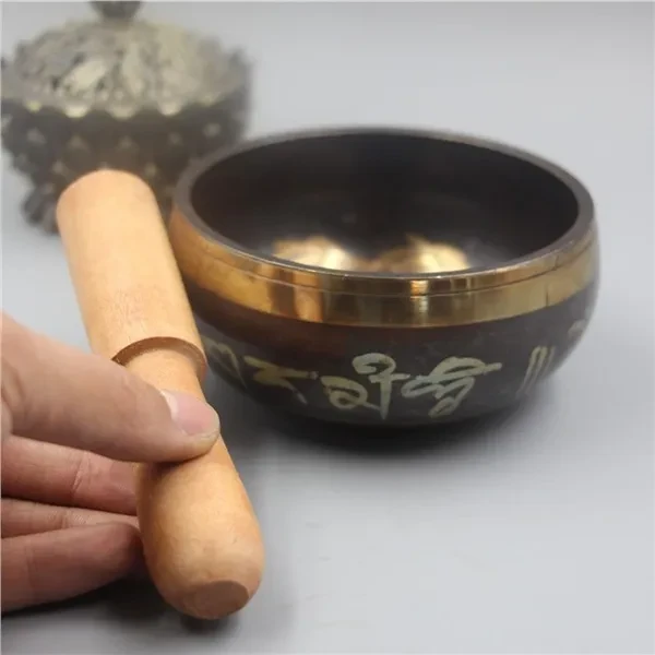 Description This is an absolutely gorgeous bowl with great meditative sound. These singing bowls are used worldwide for yoga, meditation and spiritual healing. The sound vibrations that resonate from our singing bowls promote a calm and relaxed state. Features - Color: As shown. - Material: Copper and wood. - Opening diameter: Approx. 8cm/9.5cm/11cm/11.5cm/12.5cm. - Promote healing from stress disorders, pain, depression and most forms of dis-ease. - Unique tones create the perfect state for deep meditation, creative thinking and intuitive messages. - Fit in the palm of your hand, looks great on your desk or shelf, and adds a fun and harmonious flavor to your decor. 1 x Tibetan singing bowl 1 x Mallet/Stick
