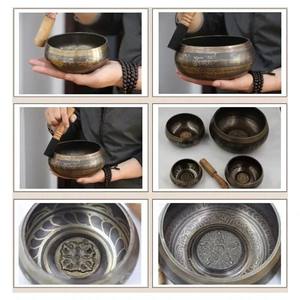 8cm9.5cm11cm11.5cm12.5cm Tibetan Meditation Yoga Singing Bowl Set with Mallet