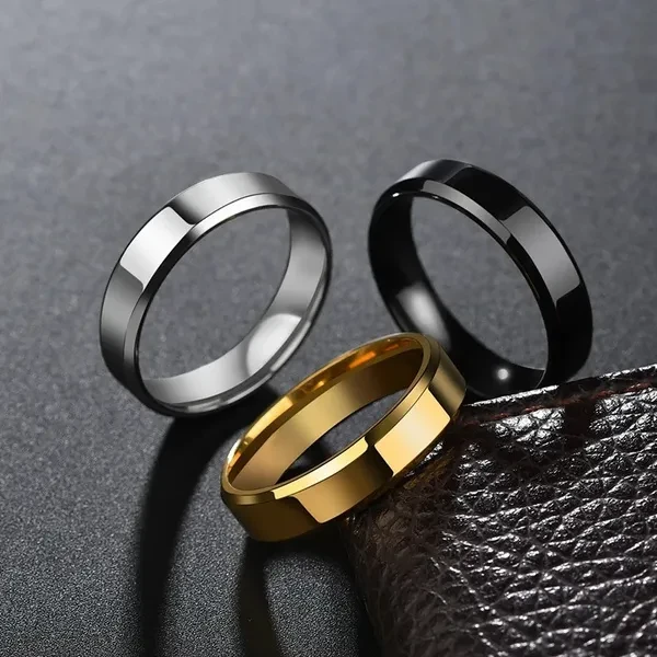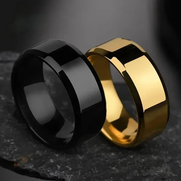 8mm Simple Charm Men Ring Smooth Stainless Steel Black Gold Charms Rings Wedding Couples Rings for Man or Woman Gift