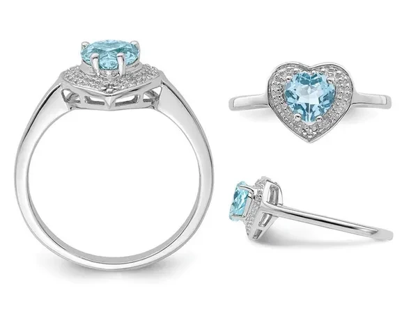 A heart cut shaped swiss blue topaz gemstone is the centerpiece of this crisp rhodium plated sterling silver ring in this simple and attractive gemstone ring , featuring the birthstone of December.