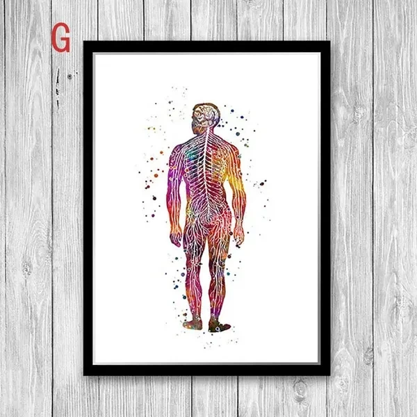 Abstract Anatomy Poster Nordic Style Canvas Wall Art Print Watercolor Meridian Painting for Medical Decor No Frame
