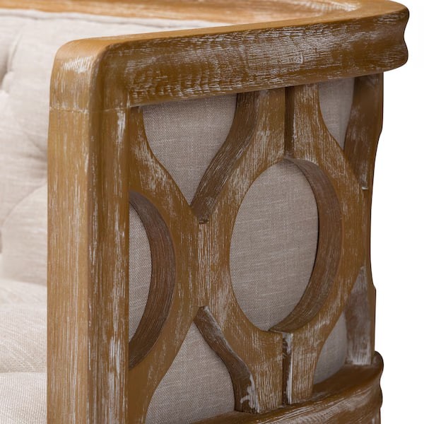 Agnes Beige Linen Upholstered and White-Washed Oak Wood Sofa