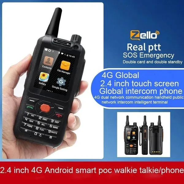 Intelligent intercom terminal device with 2.4-inch touch screen and 4G buttons, Android smartphone with ZELLO PTT network and software intercom function, support for downloading apps, black screen intercom, memory 1+8GB quadcore processor core, front and rear dual cameras supporting law enforcement recording, adding memory card to expand memory, supporting the use of third-party APP software or network intercom applications such as Taotao and Weila, and unlimited intercom distance, universal, let it go