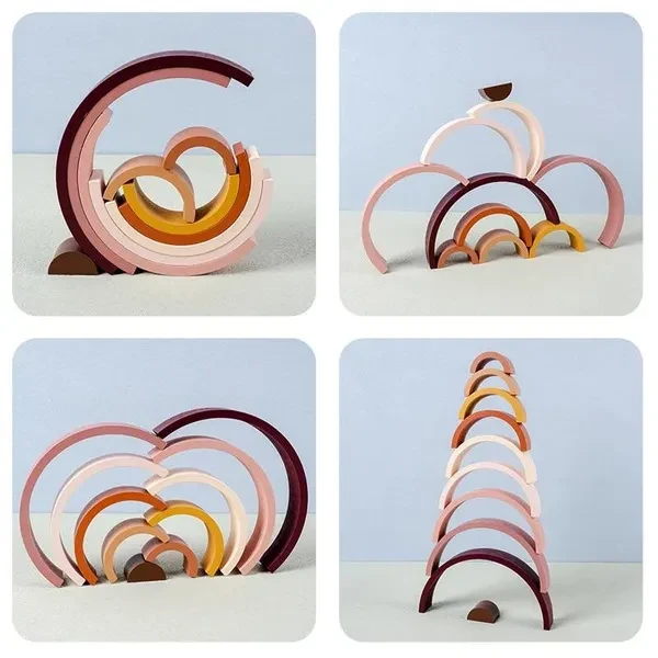 ㅤArched Wooden Rainbow Building Blocks Kids Montessori Games Color Learning Teaching Aids Baby Educational Toys for Children
