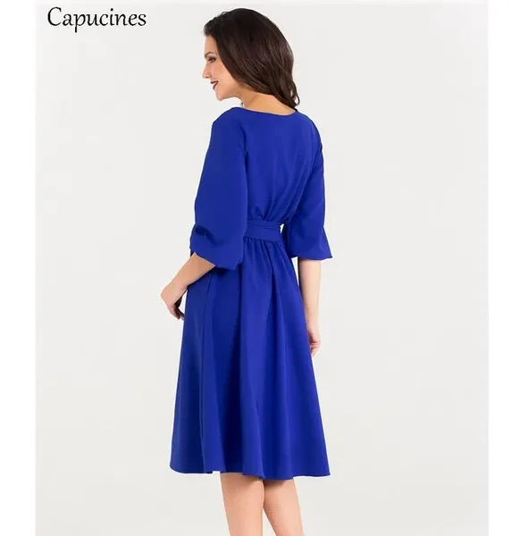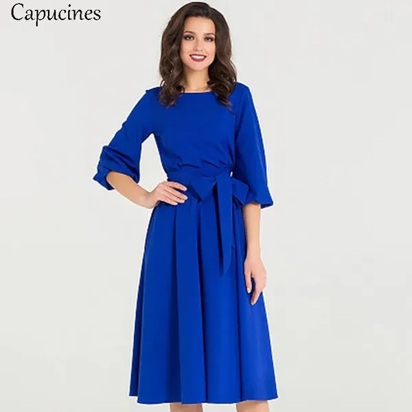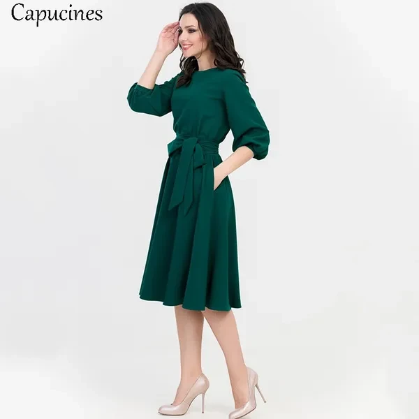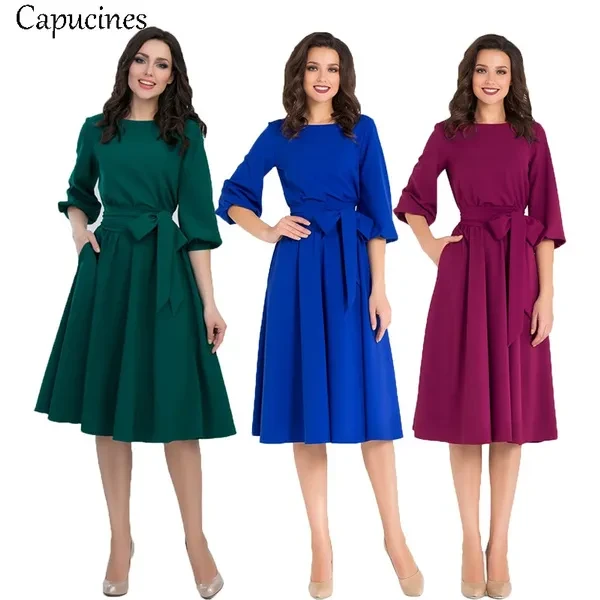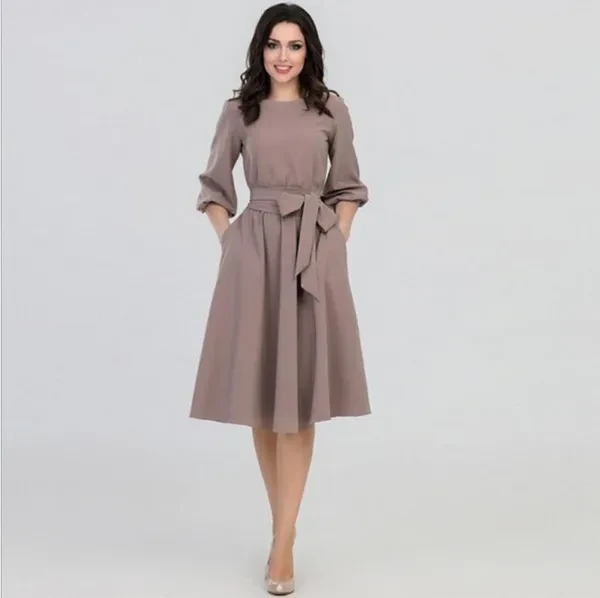 Gender: Women Silhouette: A-Line Sleeve Style: Lantern Sleeve Neckline: O-Neck Season: Summer Model Number: D018 Waistline: Natural Sleeve Length(cm): Half Material: Lanon,Polyester Dresses Length: Knee-Length Style: Vintage Pattern Type: Solid Decoration: Sashes