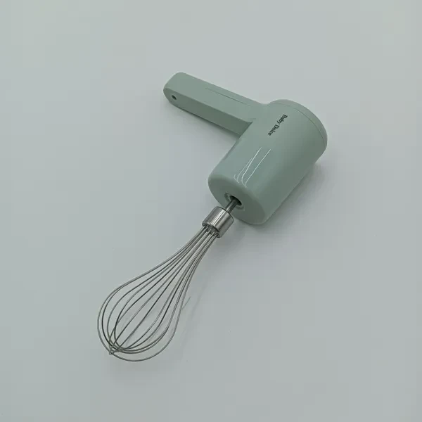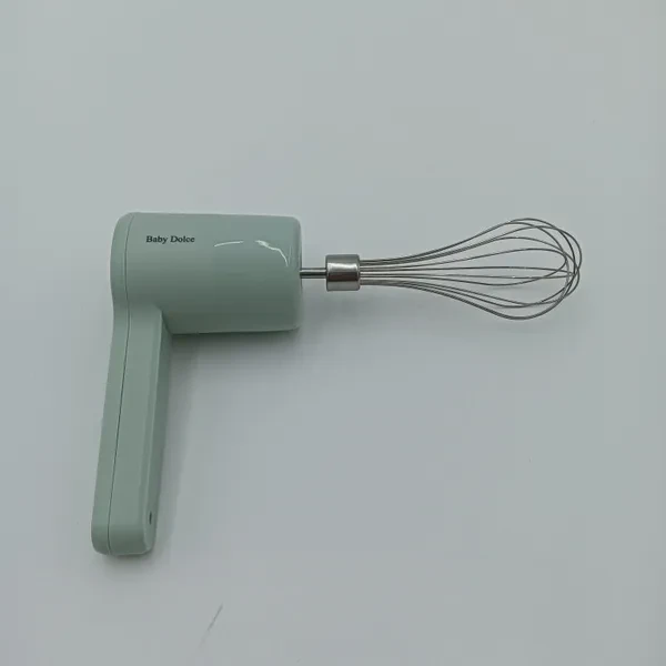 The main color of the household electric stirrer is light green. Its design is simple and modern, making it very suitable for use in a home kitchen. The head of the blender is equipped with a stainless steel stirring rod, which can effectively mix ingredients and is suitable for various purposes such as beating eggs and stirring batter. The handle part is ergonomically designed, providing a comfortable grip and convenient operation. With a fashionable overall appearance and practical functions, it is a great helper for improving kitchen efficiency.