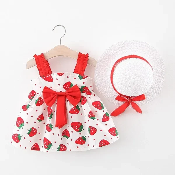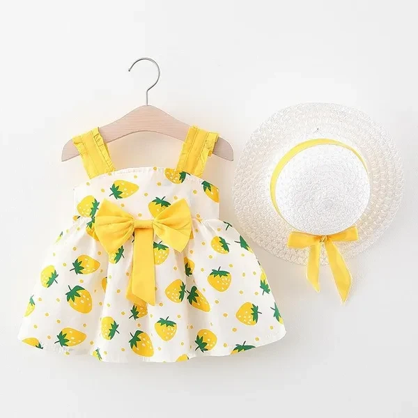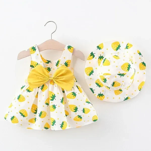 Baby Girl Dress Print Plaid Bow New Summer Princess Party Dress Infant Toddler Clothes Newborn Baby Dress+Hat 2pcs Kids Clothing Set
