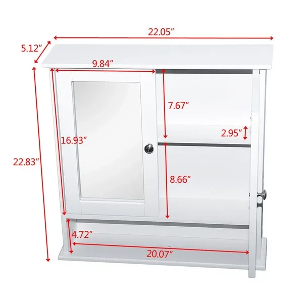 Introductions: If you are looking for a cabinet to store your cutter, this Double Door Mirror Indoor Bathroom Wall Mounted Cabinet Shelf must be a good choice for you. It's fantastic for the bathroom or in any other room where you require some additional storage. Adopting high quality MDF material, it features smooth, stable and sturdy. With a mirror design, it's very convenient for use. Moreover, it's wall-mounted, which is space saving. With high quality and fine workmanship, it's worth buying! So don't hesitate, just take it home! Features 1. Made of high quality material, smooth, sturdy and durable 2. Waterproof, suitable for humid environment 3. It has a long service life 4. Wall-mounted, save space 5. Add some additional storage for you 6. Magnetic lock to hold doors shut 7. Convenient for use Specifications: 1. Material: MDF 2. Color: White 3. Dimensions: (22 x 5.1 x 22.8)" / (56 x 13 x 58)cm (L x W x H) 4. Weight: 13.23 lbs / 6 kg Package Includes: 1 x Double Mirror Bathroom Cabinet 1 x Manual