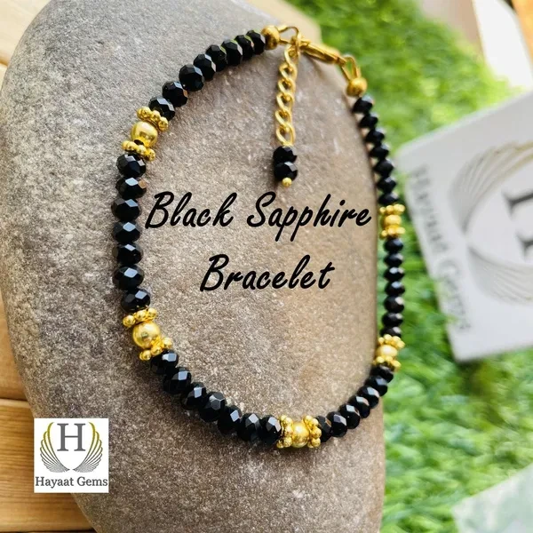 Black Sapphire Healing Bracelet Sapphire Cut Faceted Beads Beautiful Bracelet, For Boys and Girls, Gift Bracelet Jewelry Making