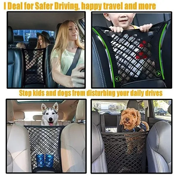 Dog car barrier helps prevent accidents and distractions: To prevent distractions while driving. As a pet car barrier keeps naughty pets or kids in their own area.Car safety for dogs and baby. As a storage bag for car can be used to store loose toys or items and keep them from moving around the vehicle. Four-Sided elastic dual mesh: The pet car barrier adopted durable polyester an extra thick (but still lightweight) dual-mesh design, the upgraded barrier size is 11.7in x 11.7in ( when not stretched ) will be more perfect fit, the stretchable pet net for car is durable, reliable and resilient,a nearly universal fit for most cars and SUVs . Easy to install with included hooks: Four safety hooks that quickly clip to your car''''s headrests on the top and the seat from underneath. It just takes a couple minutes to install and begin to use the convenient cargo netting.WITHOUT drilling, hammering or tape. As a car storage: Space-saving, mount on the middle gap between the left & right seats, or the seat back, you can store everything from grocery lists and your purse to dog toys and tablets. Particularly important on long road trips with your family, the mesh storage is a great place for snacks, juice and bottled water. Manufacturer Name:Bowen International GmbH Manufacturer Address:Jagdfeldring 72,Haar, Jagdfeldring, 85540,German Manufacturer E-mail:info.bowen@gmx.de