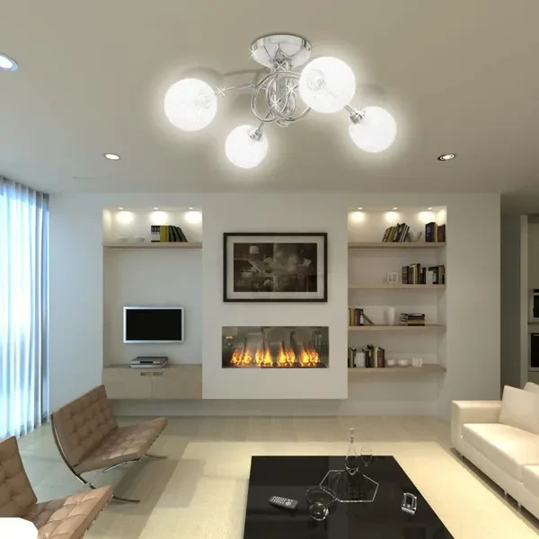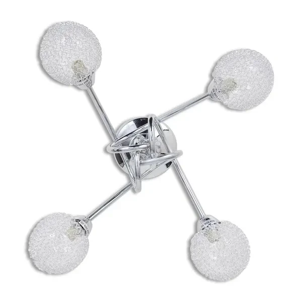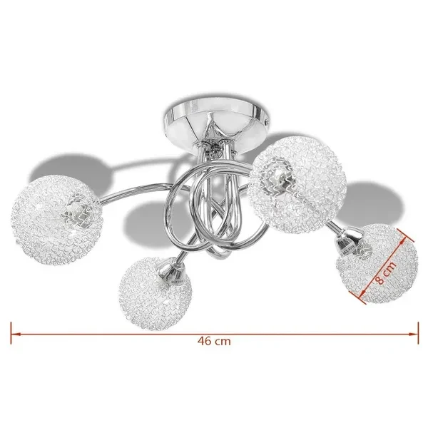 This unique ceiling lamp, with four aluminum wire mesh wire, features a classic and modern design. The chrome finishing gives this lamp a contemporary style - perfect for living room or bedroom with any style. This lamp can be easily mounted on any ceiling with a high quality metal base. Four tangled metal tubes present a chic look. Wonderful light will come through those delicate glass shades, illuminating every corner of the room. The aluminum mesh wire outside the shades makes the light shine more brightly. This exclusive ceiling lamp is guaranteed to be distinguished by its pleasing simplicity. This lamp is suitable for four G9 bulbs. Delivery includes 5 bulbs, one of which is offered as replacement.