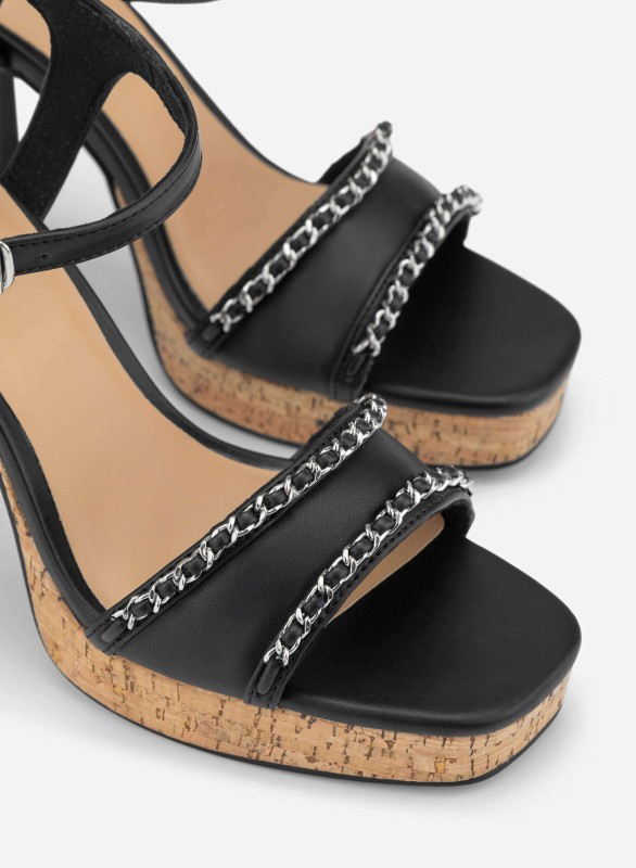 Chain Strap Platform Sandals - PUM 0814 - Black