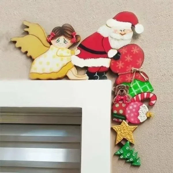 Christmas Door Frame Decorations Wooden Decorations Santa Claus Christmas Elk Wood Crafts Christmas Decorations