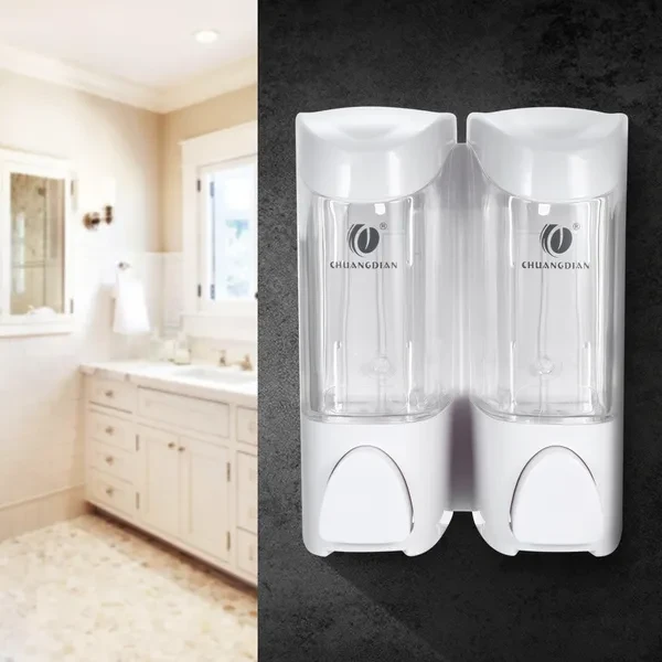 CHUANGDIAN 300ml 2 Wall-mounted Two Chamber Manual Soap Dispensers Shampoo Box Shower Gel Liquid Soap Dispensers Soap Dispenser & Holder
