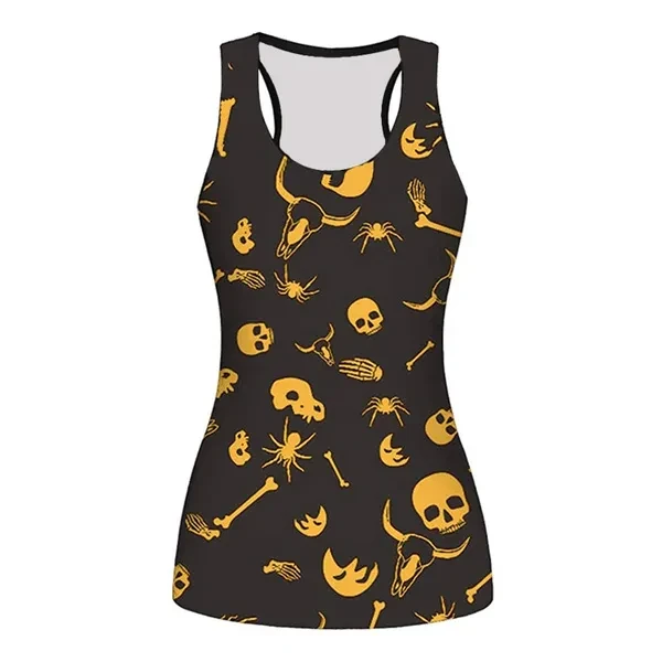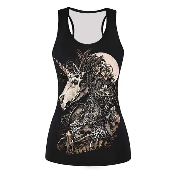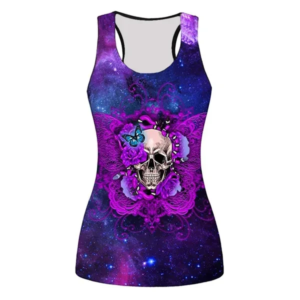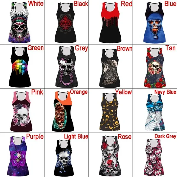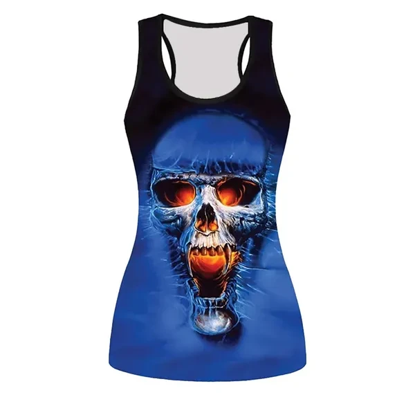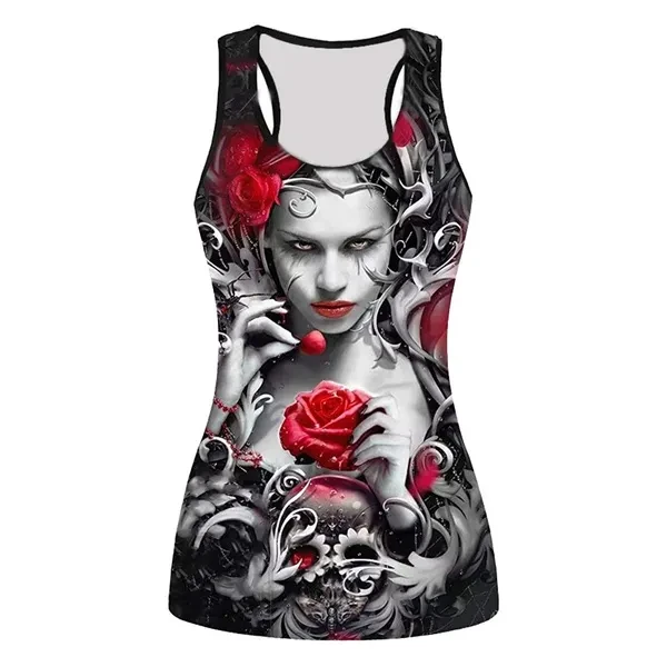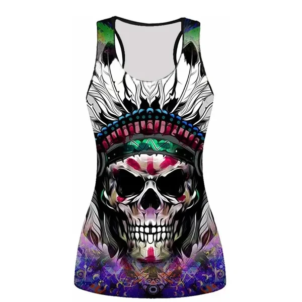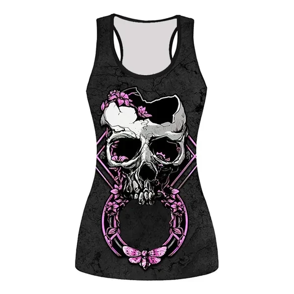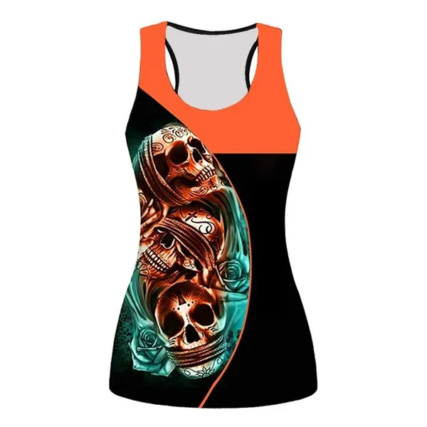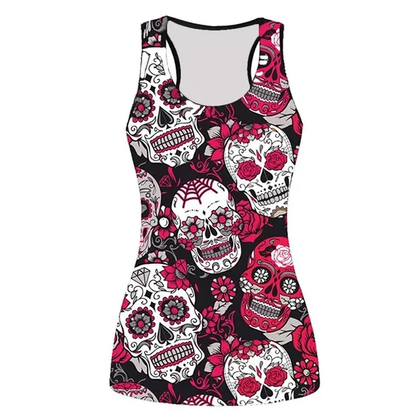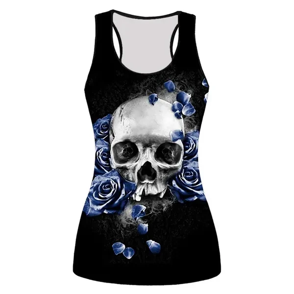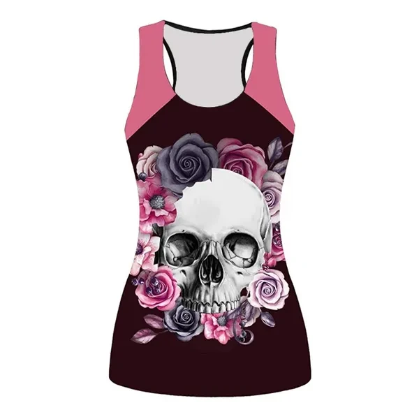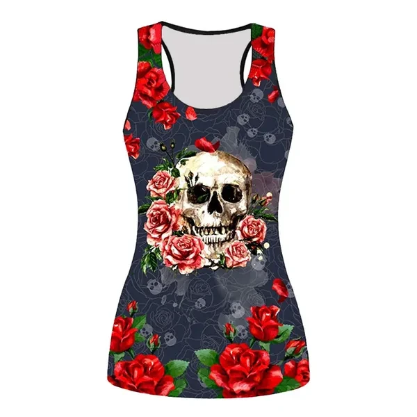 Cool Skull Flower Plus Size Tank Tops Women Vests Workout Shirt Soft Summer Sport Yoga Sleeveless Shirts