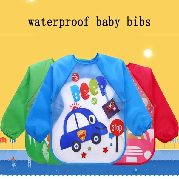 Cute Cartoon Animals Baby Bibs Waterproof Colorful Children Bib Full Sleeve Bibs Children Apron Long Sleeve Feeding Bibs