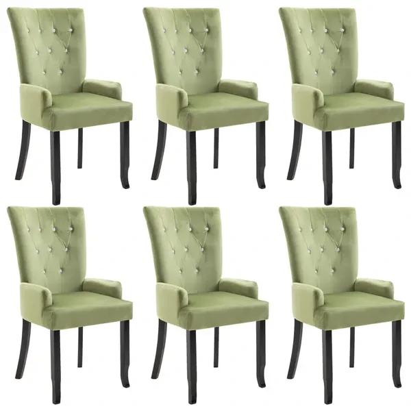 The dining room chairs have an elegant and timeless design and are real eye-catchers in every dining room and kitchen. These armchairs are provided with a thick, soft upholstery and are ergonomically designed to offer you a pleasantly comfortable seat. The solid wooden legs contribute to the stability and robustness of the chairs. The dining room chairs are easy to assemble. The delivery includes 6 dining chairs.