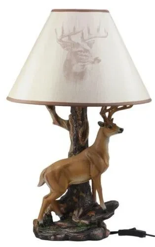 * This Whitetail Deer Table Lamp comes with the shade as pictured. Made of polyresin, hand painted and polished, the quality finish is superb! Because all our products are individually hand painted work of art, the color tone may vary from the pictures. * The overall lamp measures about 20" tall. The shade 12" in diameter and 8" tall. * The body of the lamp measures approximately 14.25" tall, 8.5" long and 5.5" deep. * Use only Type A light bulb (not included), Max 40 watt. Approx. 4 1/2 ft. UL Approved electric cord with on/off switch. * This is an Ebros Gift exclusive collection.