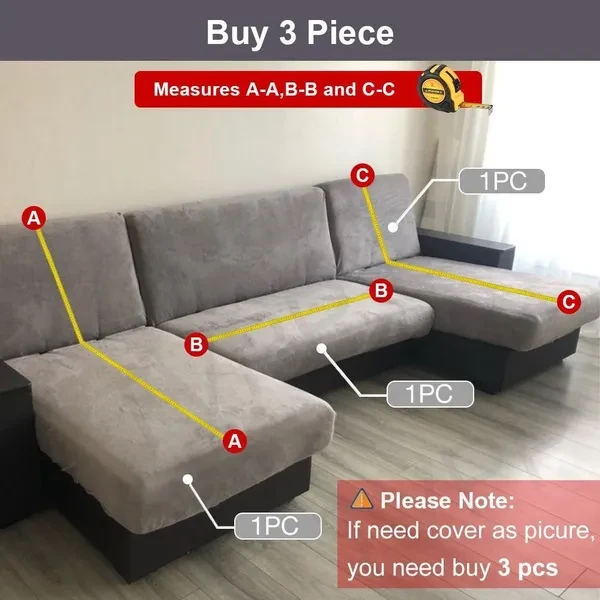 Please Note: ★★★Product Sell Quantity:1PC 1. We sell sofa covers in 4 sizes. There will be size differences in different countries, please refer to the size guide before buying! Must purchase the correct size to use. If you do not understand, please contact us, we will reply you within 48 hours, if your purchase is wrong, we will not refund. 2. Each part of the sofa needs a cover. Please confirm the quantity when buying. For example, the L-shaped chaise longue has 2 parts. You need to measure the correct size to buy 2 pieces. Please do not buy only one piece. Our sizes are all individual units, thank you! 3.L shape sofa need buy 2pcs Size Guide: ①For 1/2/3/4 seater sofa: Please measuring length of AA( included the armrest),need buy 1pc if Size=90-140cm , buy 1-seater if Size=145-185cm,buy 2-seater if Size=190-230cm,buy 3-seater if Size=235-300cm,buy 4-seater ②For L shape sofa: Please measuring length of AA,BB(included the armrest),need buy 2pcs If size A-B =90cm, size C-D=145cm. You need buy 3 seater sofa + 4 seater sofa = 2pc 3.sectional sofa: Please measuring length of AA,BB,CC (include the armrest),need buy 3pcs If AA=185cm, BB=230cm,CC=300cm. You need buy 3 seater sofa + 4 seater sofa + 2 seater sofa. Package includes of 1PC sofa cover,plz choose correctly quantity for your sofa shape!