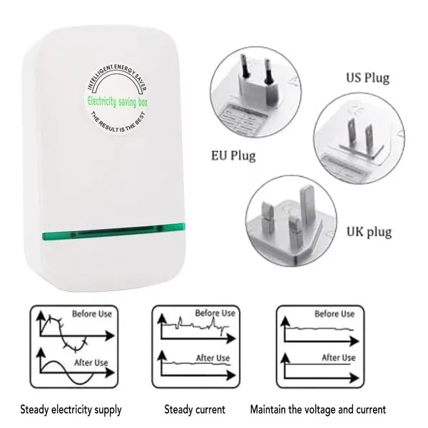 Feature: 1. Preserve Household Appliances: Voltage stabilizer stabilizes voltage, prevents voltage instability, stabilizes power consumption, achieves power saving effect, and prolongs the service life of electrical products. 2. Voltage Regulation and Energy Saving: Electronically controlled capacitors are used to balance the current, so as to improve the power consumption of electrical products in an all round way and avoid the waste of invalid power. 3. 24 Hours Uninterrupted Work: 365 days 24 hours use will not increase the burden of electricity consumption, you just plug the energy saver into the power outlet, the green light will light up, and then start to work by keeping the device connected. 4. Wide Application: Suitable for conditioners, washing machines, refrigerators, electric fans, TVs, water pumps, stereos, fluorescent lamps and other products, suitable for homes, company lines, shops, small factories, etc. 5. Safe and : This battery saver is made of premium ABS material, which is safe, convenient and with a service life. Specification: Item Type: Power Saver Material: ABS Gross Weight: 100g / 3.5oz Product Size: Approx.97 x 58 x 30mm / 3.8 x 2.3 x 1.2in(measurement without plug part) Voltage: 90-250V Load Power: 30KW Usage: Plug and play Uses: Household appliances, commercial electricity, energy saving and consumption reduction Package List: 1 Saver 1 x Instruction Manual