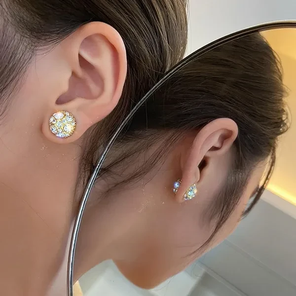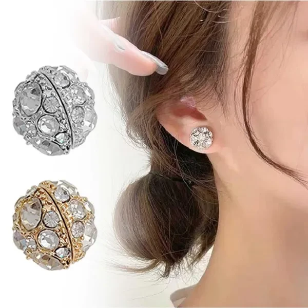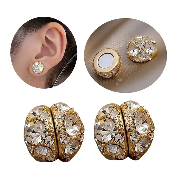 Elegant Strong Magnet Ear Clip Inlaid Zircon Round Clip on Earrings Jewelry