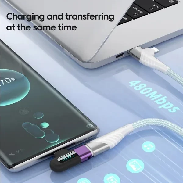 Elough 120W Type C to Type C Elbow Digital Display Adapter Fast Charging OGT Adapter For Samsung Huawei Xiaomi phone Accessories