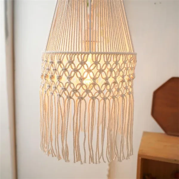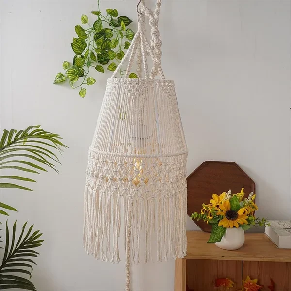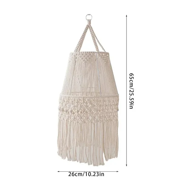 <p>Features: Immerses your living space in the warm glow of Bohemia elegance with our Handmade Macrames Light Shade, a must have for those who cherish artisanal charm and nature. from cotton rope, this lampshade boasts a unique handwoven that diffuses light beautifully, creating inviting atmospheres. for the bohemian at heart, this Macrames chandelier is perfect for individual who appreciate handmade Decoration to infuse their homes with organic sophistication. Transform any room be it a cozy bedroom,or a living area into a haven of Bohemia with easy to install hanging lamp cover. Not just a source of light, this Bohemia Decoration Lampshade serves as focal point, elevating weddings, bohemian themed parties, or simply as an enchanting addition to everyday home Decoration. Specifications: Materials: Cotton Thread, Iron Size: 26x65cm Package Includes: 1PC Macrames Light Shade note: Please allow 1-3mm error due to manual measurement. make sure you not mind before bid. Due to the differences between different monitors, the picture may not reflect the actual of the item. Thank you! </p>