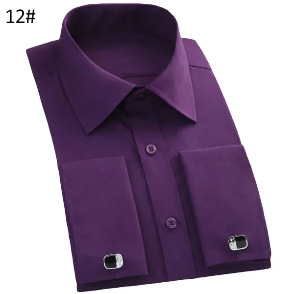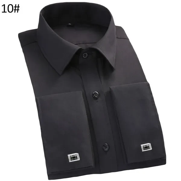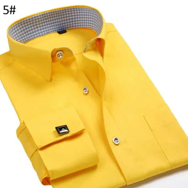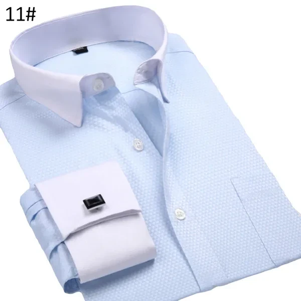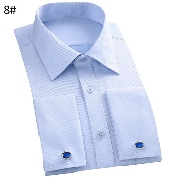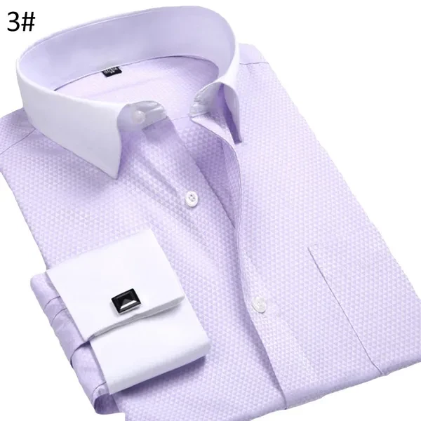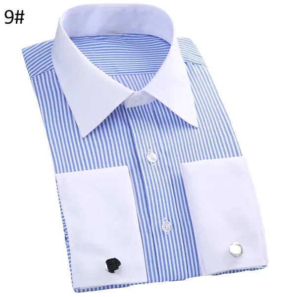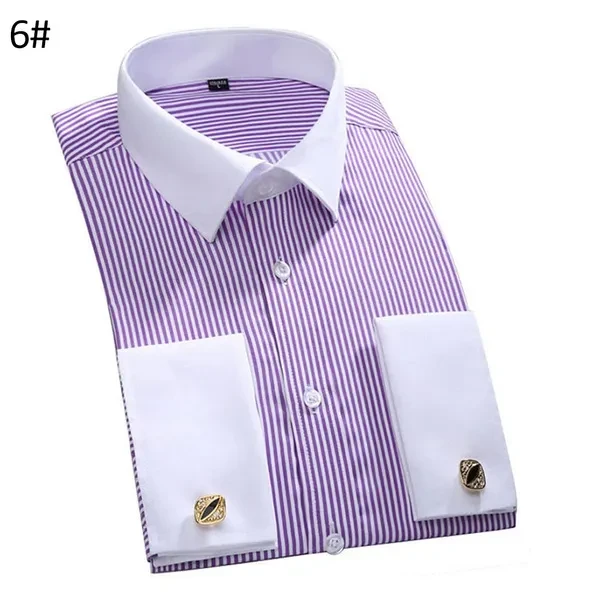 Fashion Men French Style Convertible Cuff Buttons Down Striped Shirt with Cufflinks