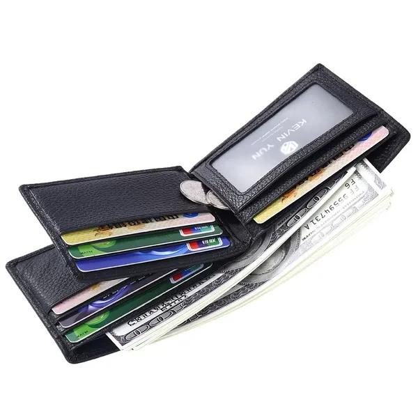Fashion Men Genuine Leather Short Bifold Wallet Male Business Purse ID Card Holder Large Capacity