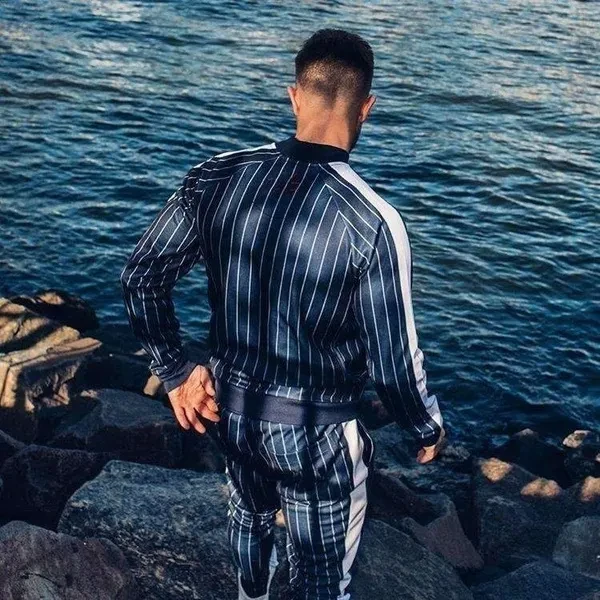 Fashion Mens Striped Tracksuit Jogging Suit Casual Sport Wear