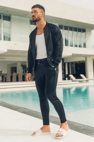 Fashion Mens Striped Tracksuit Jogging Suit Casual Sport Wear