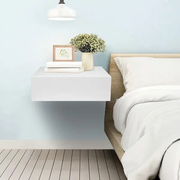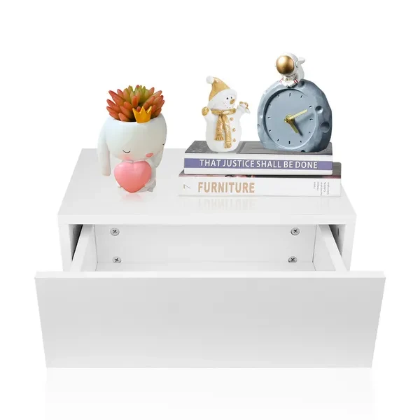 1. Floating bedside table, simple and stylish, exquisite craftsmanship, suitable for decorating your bedroom. 2. The desktop can be placed alarm clock, mobile phone, light, photo frame and other decorations. 3. Made of high‑quality MDF material, sturdy and durable, wear‑resistant, and has a long service life. 4. With a seperate drawer, can store wallets, keys, books, remote controls and other items. 5. Easy to assemble, can be directly installed on the wall, saving space, suitable for bedroom use. Specification: Item Type: Beside Table Material: MDF + Pine Wood Color: White Load-Bearing: 25kg / 55.1lb Weight: Approx. 7250g / 255.7oz Product Size: Approx. 30x46x15cm / 11.8x18.1x5.9in Package List: 1 x Floating Beside Table 2 x Guide 1 x Accessories Kit 1 x Manual Note: 1.Please kindly note that this product needs to be assembled by yourself. 2.Please allow 0‑1 inch error due to manual measurement. Thanks for your understanding. 3.Monitors are not calibrated same, item color displayed in photos may be showing slightly different from the real object. Please take the real one as standard.