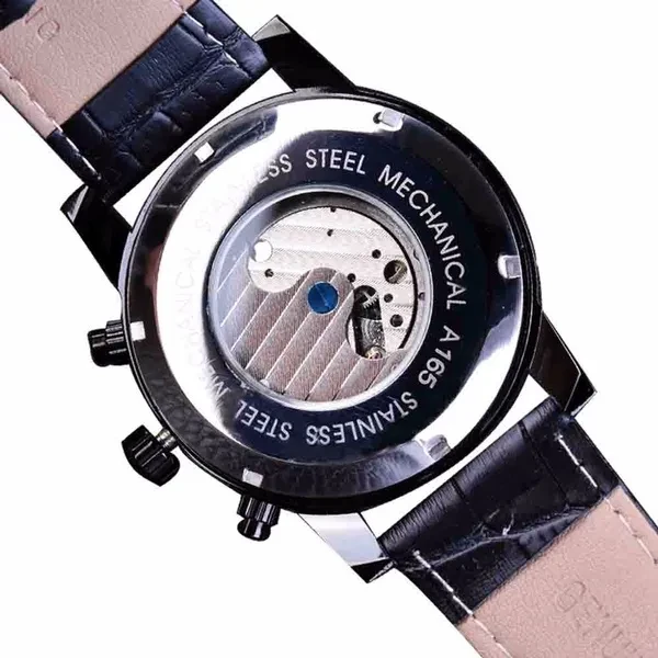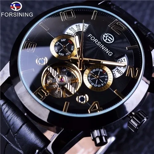 FORSINING Multifunction Mechanical Auto Analog Date Day Leather Strap Male Clock Men Dress Wrist Automatic Self Wind Watch with Gift Box