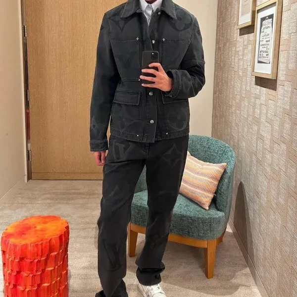 ---- gradient effect large logo printing washed black and gray straight denim jacket - --Its version is a must, using the classic straight slim design, which fits the curve of the human body just right, and can skillfully modify the body shape. - Shows neat shoulder lines and slender waist contours, while leaving a moderate space for the body to move, comfortable and not tight. - --- This denim jacket has a unique craftsmanship, and uses tie-dye technology to interpret the dreamy color of the Northern Lights, which is natural and rich in layering. Selected high-quality denim fabrics, after careful treatment, have good wear resistance and durability. ?Color: Black ?Size:M L XL M: Bust 120 Length 68 L: Bust 124 Length 70 XL: Bust 128 Length 72