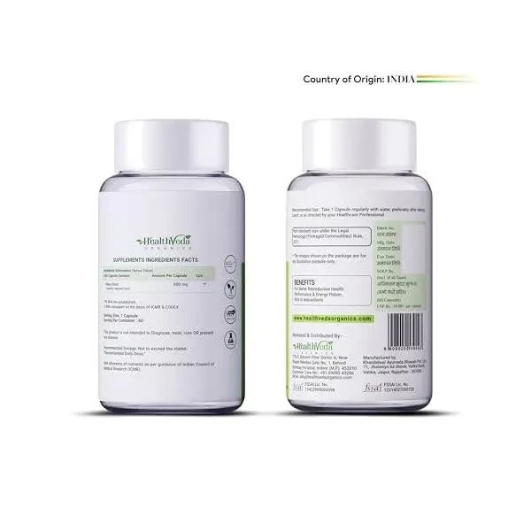 HEALTH VEDA ORGANICS PRIVATE LIMITED Maca Root Supplement 800 Mg 60 Veg Capsules Promotes Reproductive Health Improves Energy & Enhances Performance For Men & Women