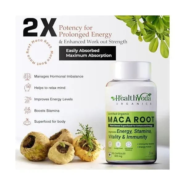 HEALTH VEDA ORGANICS PRIVATE LIMITED Maca Root Supplement 800 Mg | 60 Veg Capsules | Promotes Reproductive Health Improves Energy & Enhances Performance | For Men & Women