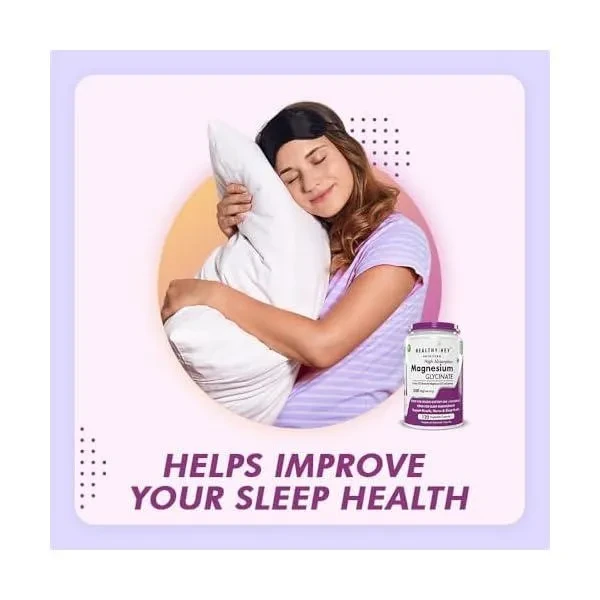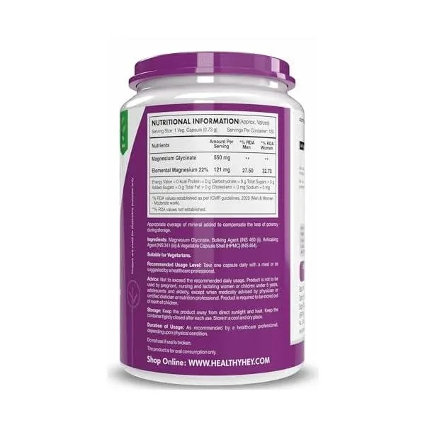 HealthyHey Nutrition Magnesium Glycinate High Absorption for Sleep Cramps & Nerves Health -120 Vegetable Capsules