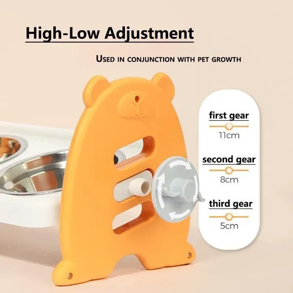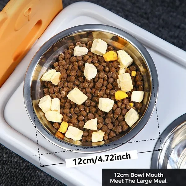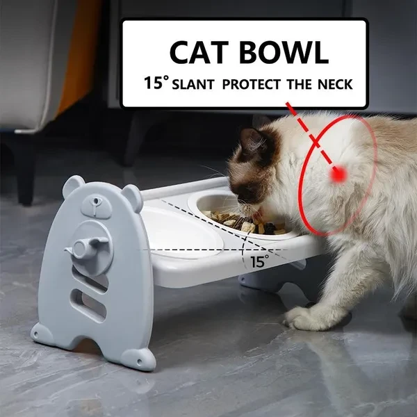 ★Protect the Neck: The Pet Double Bowl is designed with a 15° slant to ensure a comfortable feeding position for your cat, helping to protect their neck and promote better digestion. ★ Cat Food and Water Bowl Set: This set includes two bowls, allowing you to provide both food and water to your beloved feline conveniently. The elevated design promotes a cleaner eating environment, reducing the risk of contamination. ★ Optimal Indoor Cat Care: Our cat bowls are specially designed for indoor cats, considering their unique needs and preferences. The slanted design and appropriate depth of the bowls make it easier for cats to eat and drink comfortably. ★ Durable and Easy to Clean: Made from high-quality materials, our Pet Double Bowl is durable and built to last. The smooth surface and removable stainless steel bowls make cleaning and maintaining hygiene for your furry friend easy. ★ Stylish and Functional: With its sleek design and attractive color, the Pet Double Bowl adds a touch of style to any home. Its functional design ensures that your cat's food and water stay in place, reducing mess and making mealtime more enjoyable for both you and your pet.