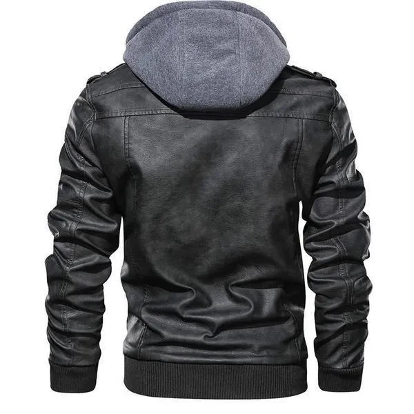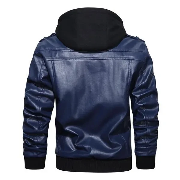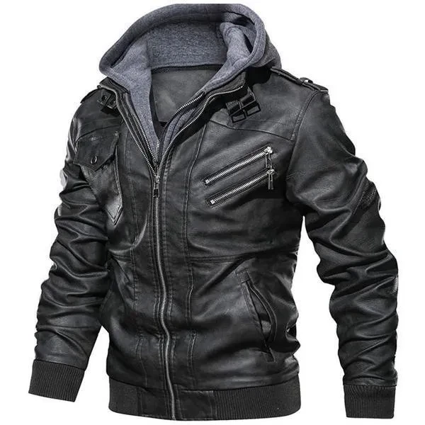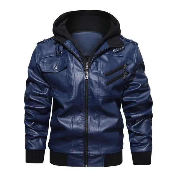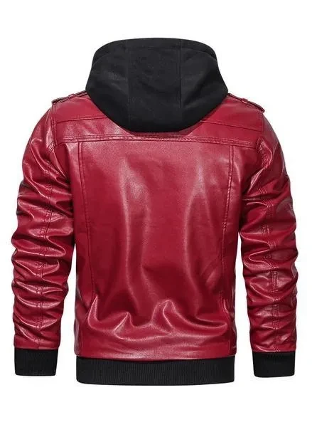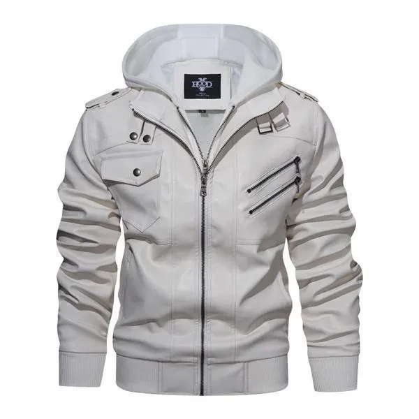 Hood Crew Men's New Hoodie Leather Coat Fashion Casual PU Jacket Slim Leather Bomber Jackets 2 Colors