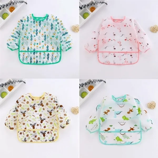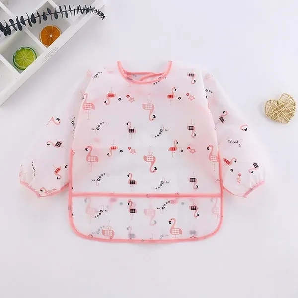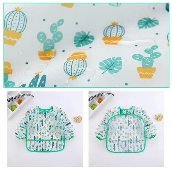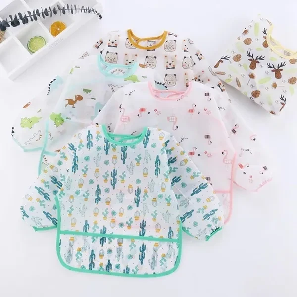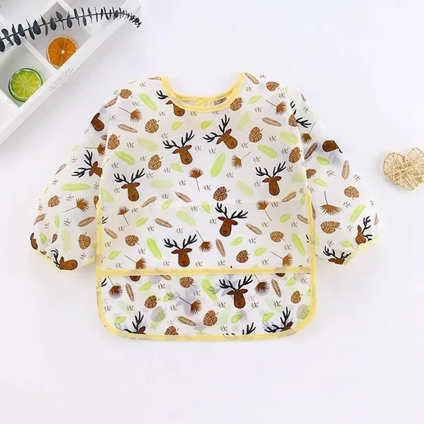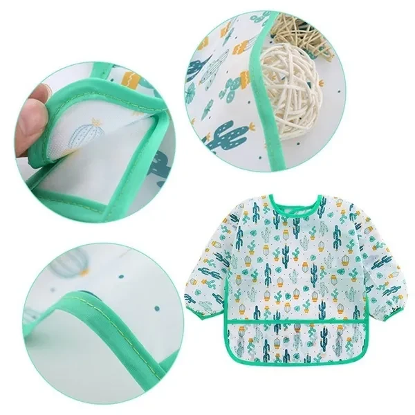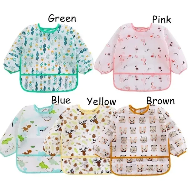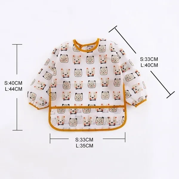 Easy to wipe off, perfect for feeding, art, eating, preschool, stains and messy play with funny designs and patterns. Liquid-proof and soft, breathable material. Perfect gift for baby shower and new moms. Led weaning moms love these trendy, lovely, and practical bibs. This waterproof sleeved bib is the great gender neutral - unisex baby gifts for baby shower. Specification: Fit for 1-5years. Material: EVA+PE. Color: show as pictures. Size: S:33*40cm(1-3 years) L:35*44cm(3-5 years) Package include: 1 * baby bib long sleeve Tips: 1.Due to various types of computers and monitors, the actual color of the item may be little different from the picture. 2.Manual measurement may exist 2-3cm difference.Please check and compare the size carefully before buying!
